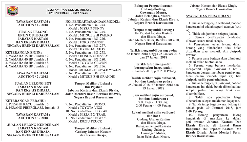 Pilih kenderaan yang anda minat dan ikut proses yang telah ditetapkan untuk tender kenderaan anda. Tetuan gzone management services & gzone auctioneer. Kereta lelong murah.rm1600.00 termasuk puspakom 5f utk urusan tukar nama.lain2 kos termasuk tukar nama di jpj roadtax. Polis nafi lelong kereta di ipd seberang perai utara. Kursus asas pembantu penguasa kastam wk19 siri 1/2018. Jpj pahang lelong 30 kenderaan sita. Jualan lelong kenderaan jualan lelong kenderaan yang telah di buat lebih 10 tahun yang lalu. Kastam diraja malaysia negeri pulau pinang. Ketika musim liburan atau mudik tiba, banyak orang memilih menggunakan kereta sebagai transportasi umum favorit. Pertanyaan yang biasa diterima dari pembaca blog ini, walaupun ada jualan lelong dari pelbagai agensi kerajaan termasuk polis, jpj dan kastam tetapi kekerapan jualan lelong dari agensi kerajaan agak kurang. Senarai kenderaan lucuthak kastam tender bersepadu bil. Cerita pengalaman masuk lelong kereta kastam (episod 1). Lokasi kejadian di presint 11 putrajaya.